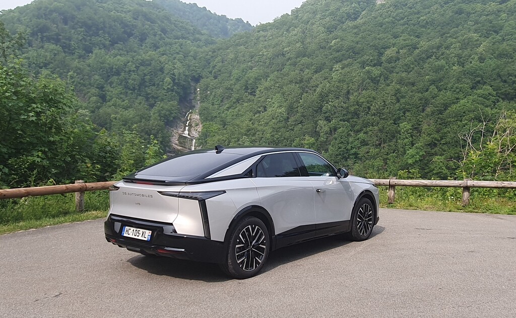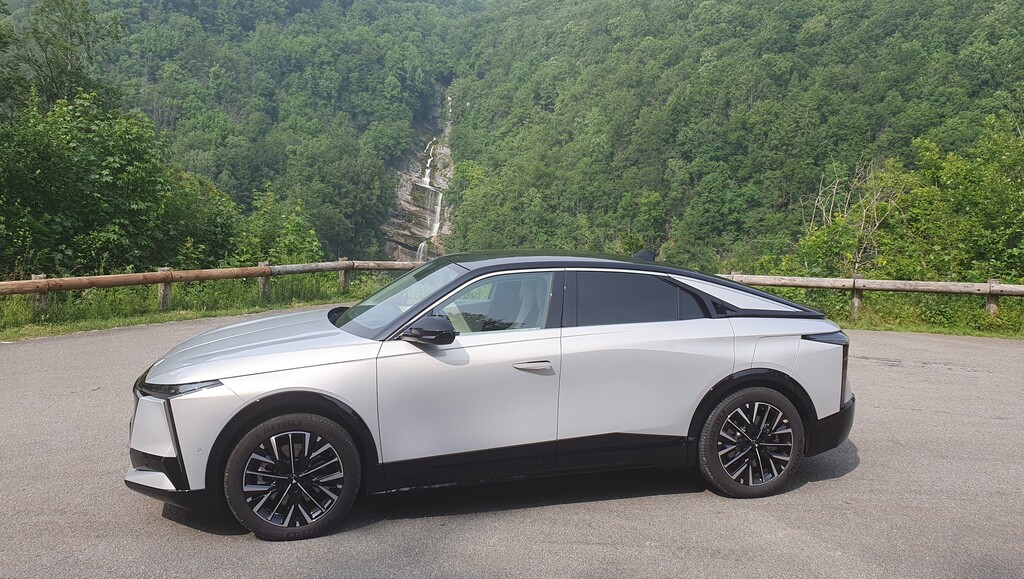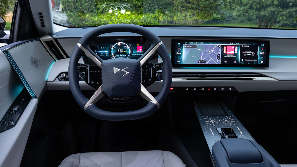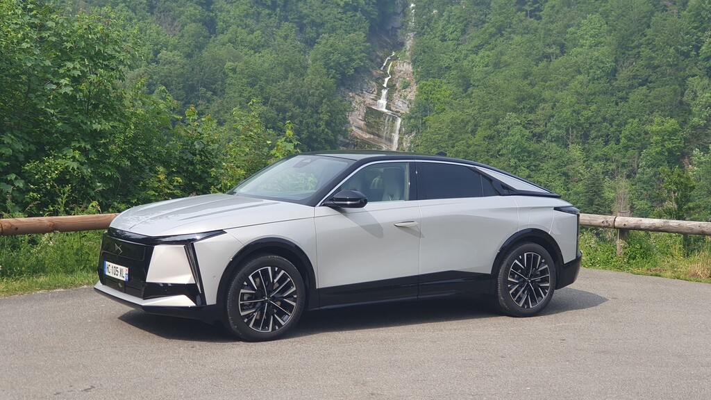Drei Antriebsvarianten stehen zur Wahl: das Basismodell mit 169 kW (230 PS) und 74 kWh-Batterie, eine Long-Range-Version mit 180 kW (245 PS) und 97 kWh großem Akku sowie eine Topversion mit Allradantrieb und 257 kW (350 PS). Die mittlere Konfiguration genügt in nahezu allen Lebenslagen, ob städtisches Gleiten, zügiges Autobahnfahren oder kurvige Landstraße: Der DS bleibt gelassen, souverän und unaufgeregt. 750 Kilometer WLTP-Reichweite stehen auf dem Papier, bei konstanten 120 km/h sollen es realistische 500 Kilometer sein. Während unserer Ausfahrt pendelt sich der Verbrauch bei unter 18 kWh/100 km ein – ein gutes Ergebnis für ein 2,2-Tonnen-Fahrzeug mit 21-Zoll-Rädern.