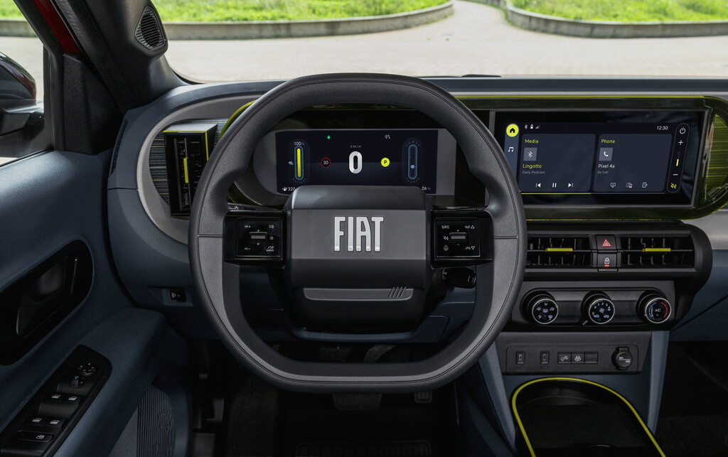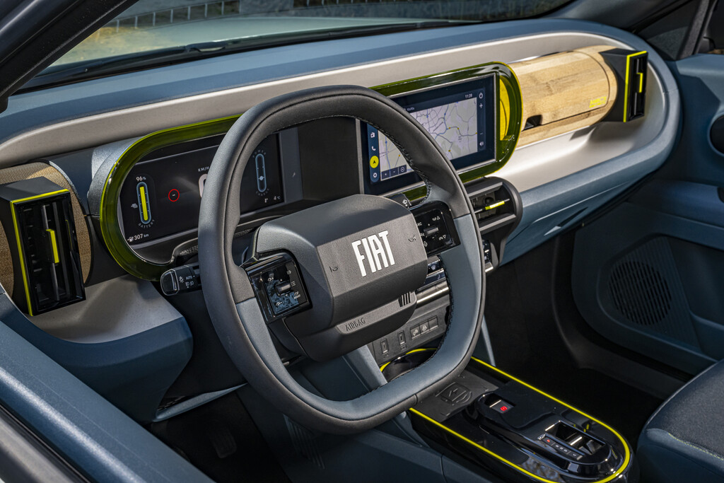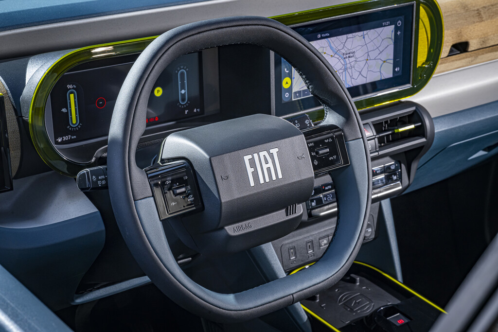 Die wichtigsten Informationen und Dienste werden über zwei Zehn-Zoll-Bildschirme gesteuert. Doch ganz in der Tradition der „tollen Kiste“ platzierten die Fiat-Kreativen zahlreiche Schalter im Innenraum, so dass die wichtigsten Dinge ganz analog bedient werden können. Beim Karosseriedesign zitieren die Designer Elemente aus den 1980er Jahren wie zum Beispiel mit den Pixel-LED-Leuchten in der Front, die an die Videospiele der damaligen Zeit erinnern sollen.