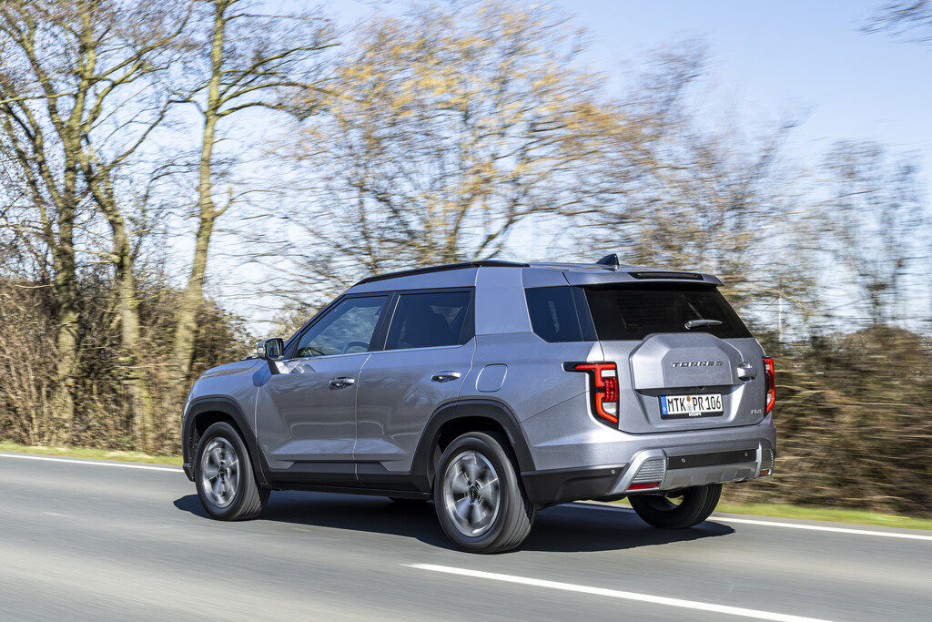 Die Lenkung trägt ebenfalls wenig zum Fahrspaß bei: etwas synthetisch im Gefühl, mit wenig Rückmeldung und einer etwas zu weich abgestimmten Servounterstützung. Dafür bleibt der Torres stabil und gibt sich bei schnellen Ausweichmanövern keine Blöße. Das Fahrwerk ist straff, aber nicht unkomfortabel – ein guter Kompromiss für den Alltag. Dazu passt auch die überraschend geschmeidige Wandlerautomatik – vor allem beim Rangieren und im Stadtverkehr.