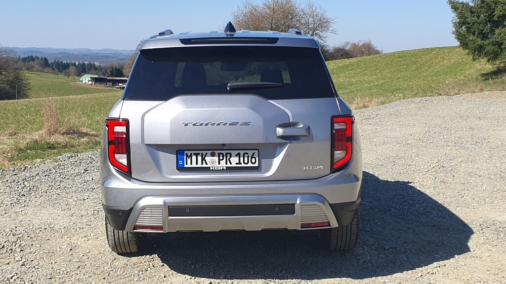 Ein Hingucker ist vor allem die silbrige C-Säule, tatsächlich das Erkennungsmerkmal des Torres. Dazu ein eigenwilliger Knick im Dach, schmale Seitenfenster, die wie Schießscharten wirken. Typisch asiatisch wirkt der leicht protzige Auftritt mit dicken Plastikplanken an den Flanken, auffälligen Zierleisten und martialischen Rädern bis 20 Zoll. Ob das wirklich alles „Powered by Toughness“ ist, wie KGM vollmundig verspricht, fragt man sich spätestens beim Blick auf die Heckklappe.
