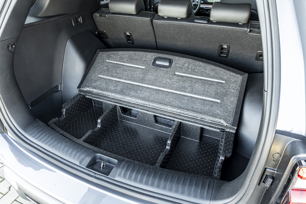 Mit ihrer angedeuteten Reserveradmulde und dem seitlichen Griff erinnert sie zwar an den Land Rover Defender, öffnet sich aber wie bei einem ganz normalen Kompaktwagen – nach oben. Wer sich zu nah heranwagt, sollte also auf das eigene Kinn acht geben. Immerhin: Hinter der Klappe verbirgt sich ein Kofferraum von stattlichen 685 Litern – mit flachen Seitenwänden, praktischen Staufächern im Unterboden und Platz für Kühltruhe oder Kinderwagen. Im Unterboden lassen sich Kleinteile verstauen, sogar das Gepäckrollo findet dort Platz. Auch in der zweiten Reihe mangelt es weder an Knie- noch Kopffreiheit. Selbst große Passagiere finden bequem Platz – und das ist in dieser Preisklasse nicht selbstverständlich.