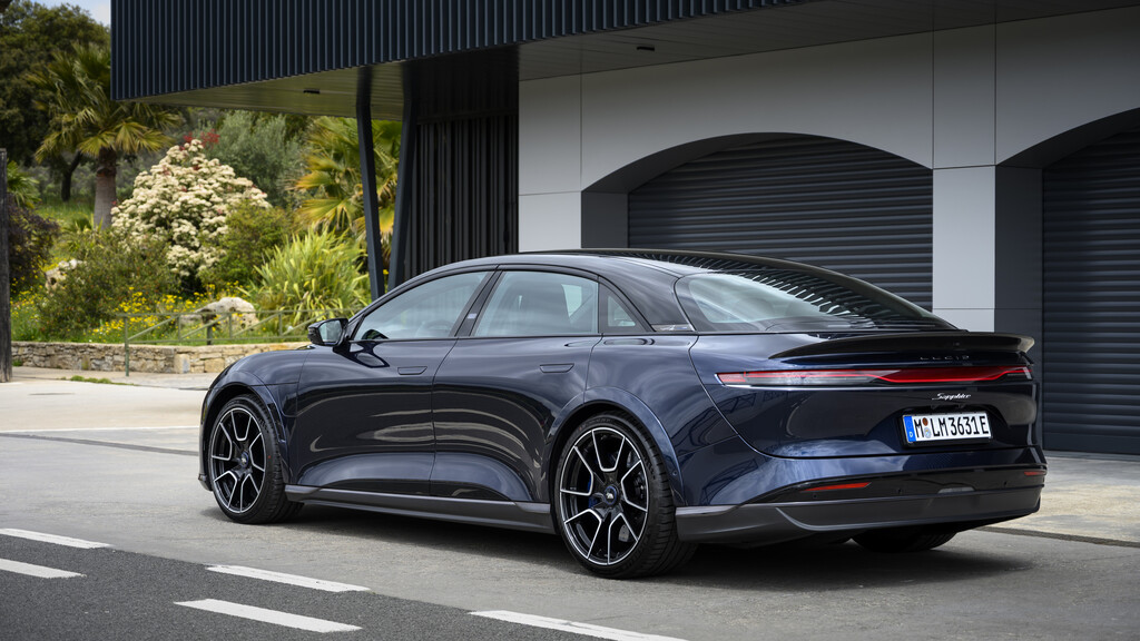 Mit der WLTP-Reichweite von 694 Kilometern aus einer 118-kWh-Batterie übertrifft der Sapphire den Wettbewerb, und trotz einem Leergewicht von über 2,4 Tonnen bleibt er agil – nicht zuletzt dank speziell entwickelter 20- und 21-Zoll-Aluminiumfelgen sowie eigens abgestimmter Reifen (Michelin Pilot Sport 4S serienmäßig, Pirelli P Zero Trofeo RS für die Rennstrecke).