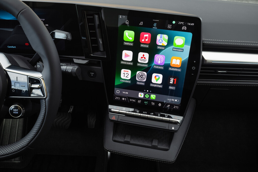 Auch innen geht Mitsubishi einen Schritt weiter. Während die Architektur klar vom Renault stammt, sorgt eine feine Materialauswahl für japanisches Flair. Kunstleder auf vielen Flächen, Ambientebeleuchtung und solide Verarbeitung bestimmen das Bild. Das 12-Zoll-Kombiinstrument und der ebenso große Touchscreen bringen die gewohnte Renault-Technik samt Google Maps, Assistant und Play Store an Bord. Android Auto und Apple CarPlay funktionieren kabellos. Ab der Topausstattung „Diamant Top“ darf man sich zudem über ein elektrochromatisches Panorama-Glasdach freuen, das sich stufenlos abdunkeln lässt – ein Komfortmerkmal, das sonst nur in teureren Premium-SUVs zu finden ist.