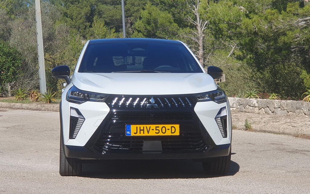 Das Design orientiert sich an Mitsubishis aktueller Formensprache mit dem markentypischen „Dynamic Shield“-Grill, schmalen LED-Scheinwerfern und einer klaren Seitenlinie. Front und vor allem das Heck unterscheiden sich deutlich vom Renault, die Proportionen und die Karosserieform sind jedoch nahezu identisch. Die optische Abgrenzung bleibt dezent.
