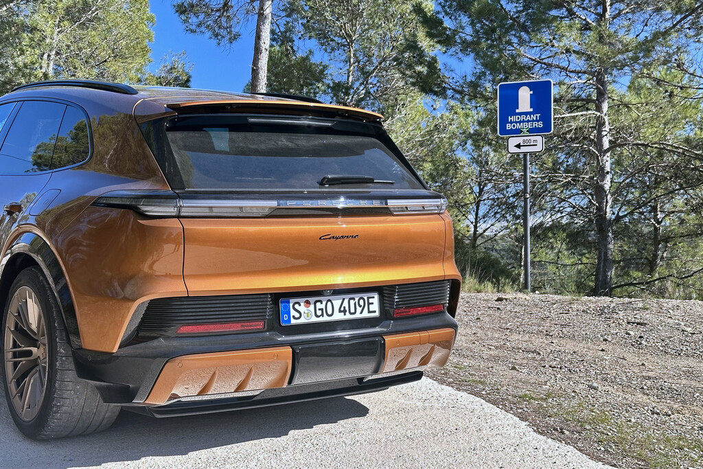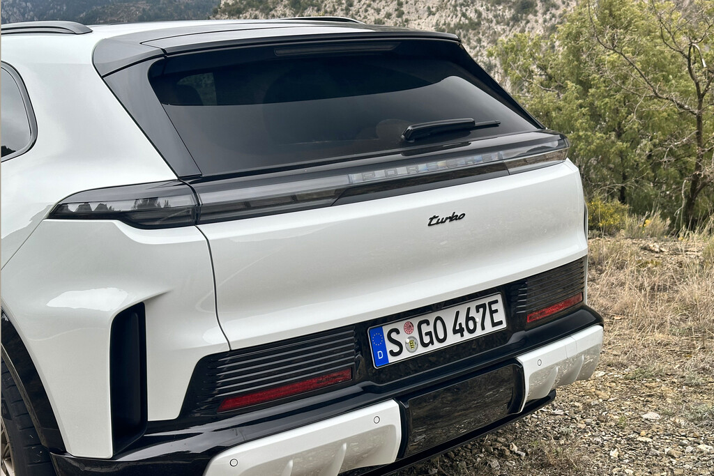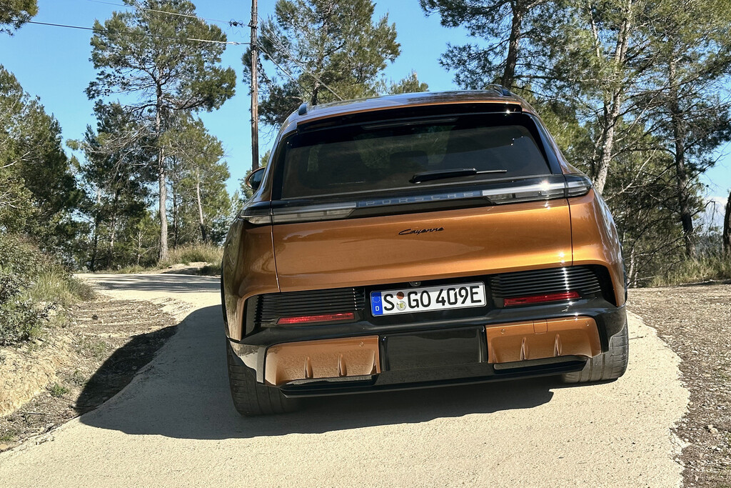 Von außen hebt sich der elektrische Cayenne (E4) vor allem am Heck deutlich von der Formensprache der früheren Generationen ab. Das Design ist Geschmackssache, jedenfalls ist die Außenhaut ist mit einem cw-Wert von 0,25 ausgesprochen windschlüpfrig gestaltet.
