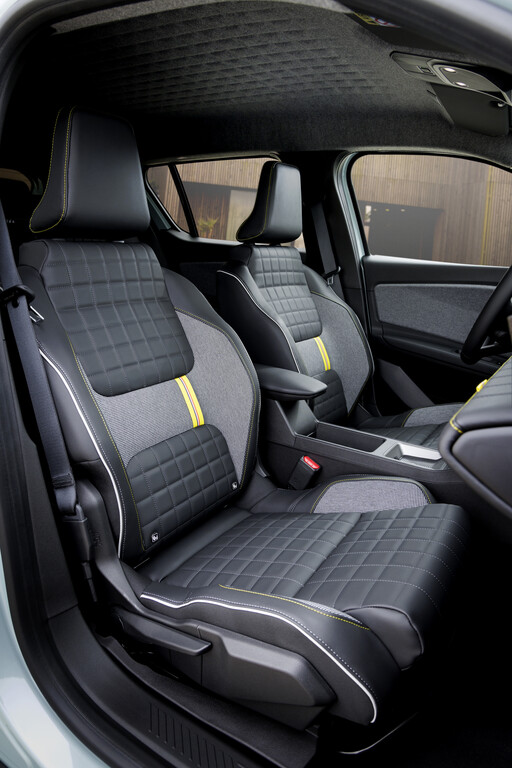 Auch bei den verwendeten Materialien setzt der R4 auf Nachhaltigkeit. Viele Bauteile wie etwa die Türen, der Dachhimmel und der Teppichboden bestehen aus recycelten oder wiederverwertbaren Rohstoffen, die Sitzbezüge der Ausstattungslinien Techno und Iconic sogar aus bis zu 100 Prozent recycelten Fasern aus Plastikflaschen. Zu spüren oder fühlen ist davon allerdings nichts. Sie sehen schick aus und das finden wir richtig klasse.