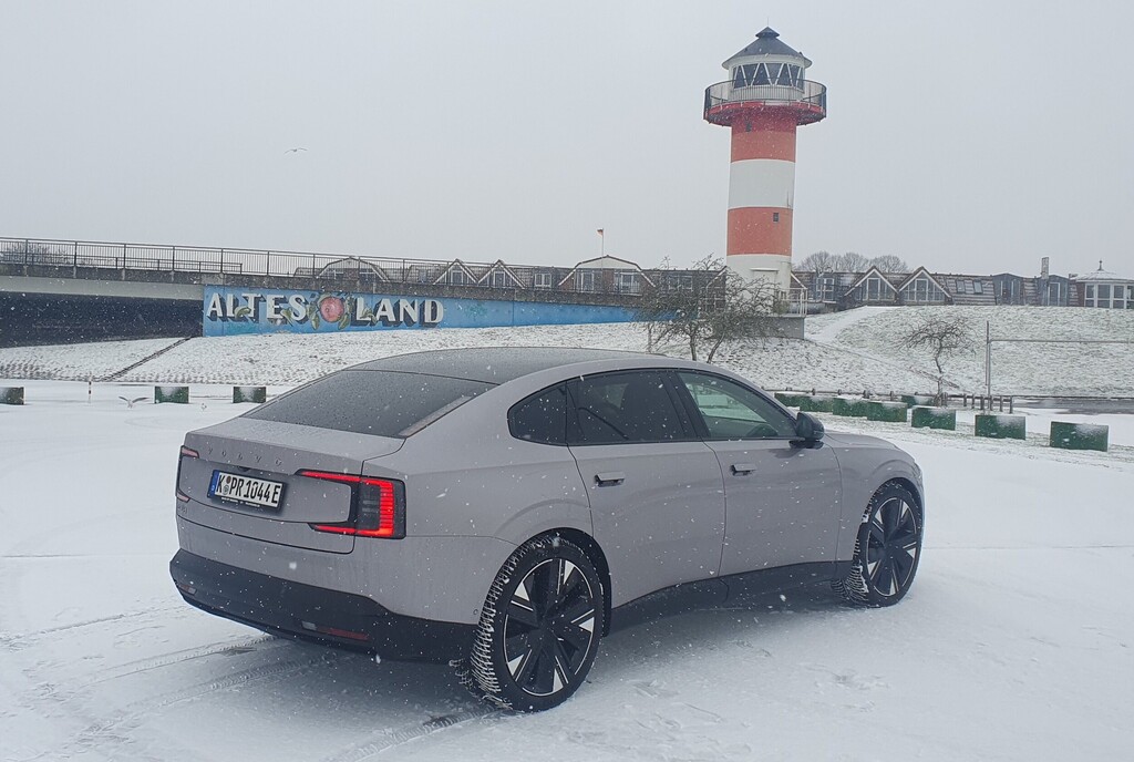 Zum entspannten Reisen passt auch das Laden. Der ES90 ist der erste Volvo, der vom Start weg mit der 800 Volt-Architektur ausgerüstet ist. Damit soll der Single Motor Extended Range an Schnellladesäulen die 92-kWh-Batterie mit bis zu 310 kW laden können. In gut zehn Minuten soll so Energie für mehrere hundert Kilometer aufgefüllt werden, von 10 auf 80 Prozent geht es laut Hersteller in etwa 22 Minuten. Für den voll aufgeladenen Akku gibt Volvo bei einem WLTP-Verbrauch von 16,2 kWh eine maximale Reichweite von 630 Kilometer an. Auf unserer Proberunde bei winterlichen Temperaturen über Autobahn und Landstraße pendelte sich der Verbrauch allerdings bei deutlich über 20 kWh/100 km ein, womit reale Winterreichweiten um die 400 Kilometer plausibel erscheinen.