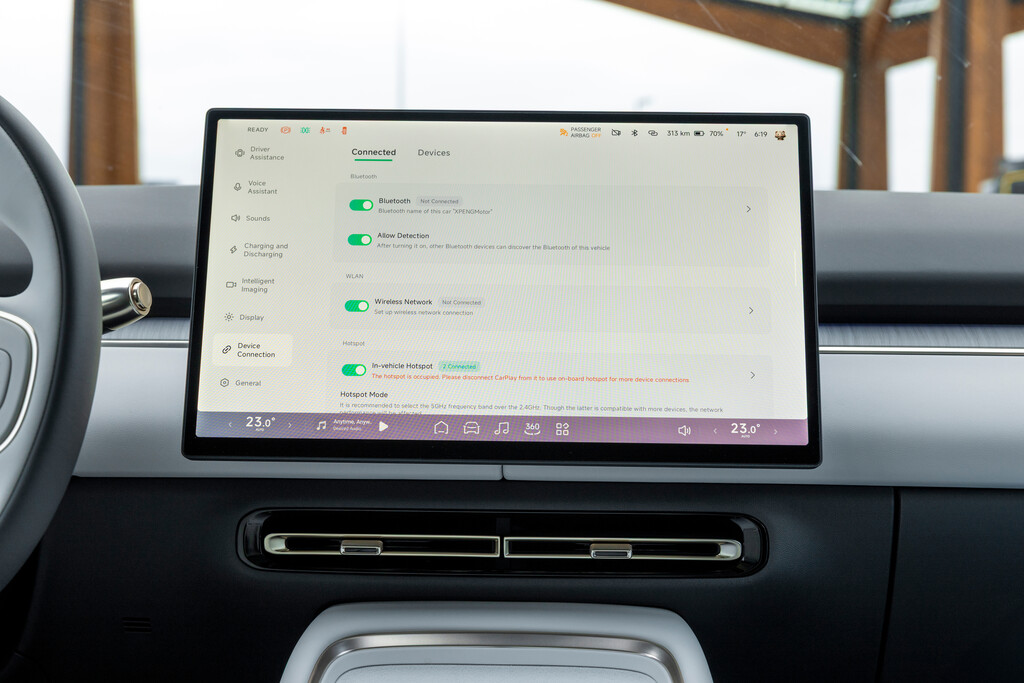 Umso mehr wird der insgesamt positive Eindruck getrübt durch die von Tesla eingeführte Unart, nahezu alle Fahrfunktionen im großen Mittelmonitor in Untermenüs zu verstecken, hier noch kombiniert mit dem chinesischen Rigorismus auf peinlichst exakte Einhaltung der EU-Vorgaben fürs assistierte Fahren. So wurde die erste Ausfahrt mit der Limousine zur einem Suchspiel der Funktionen und enervierenden Gerangel mit den Assistenzsystemen. Selbst, wenn man fast alles Warngebimmel und -gezuppel ausgeschaltet hat, nervt das System mit Tönen und Hinweisen, dass eben jene Funktionen ausgeschaltet sind, wobei der Spurverlassenswarner sich auch einfach immer wieder mal selbsttätig aktiviert. Geradezu übergriffig wirkt der Spurassistent, der immer wieder heftig am Lenkrad zerrt, was vor allem in Fahrspur-Verengungen zu einem stressigen Kampf gegen die Elektronik wird. Auch wenn die Verantwortlichen versichern, dass es sich um Vorserienmodelle und/oder Software-Bugs handelt – die beste Werbung für ein Auto, dass Xpeng als „erstes software-definiertes Fahrzeug der Marke“ feiert, ist es sicher nicht.