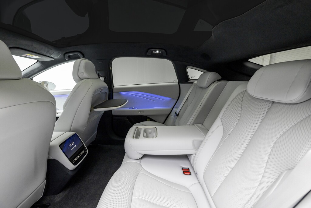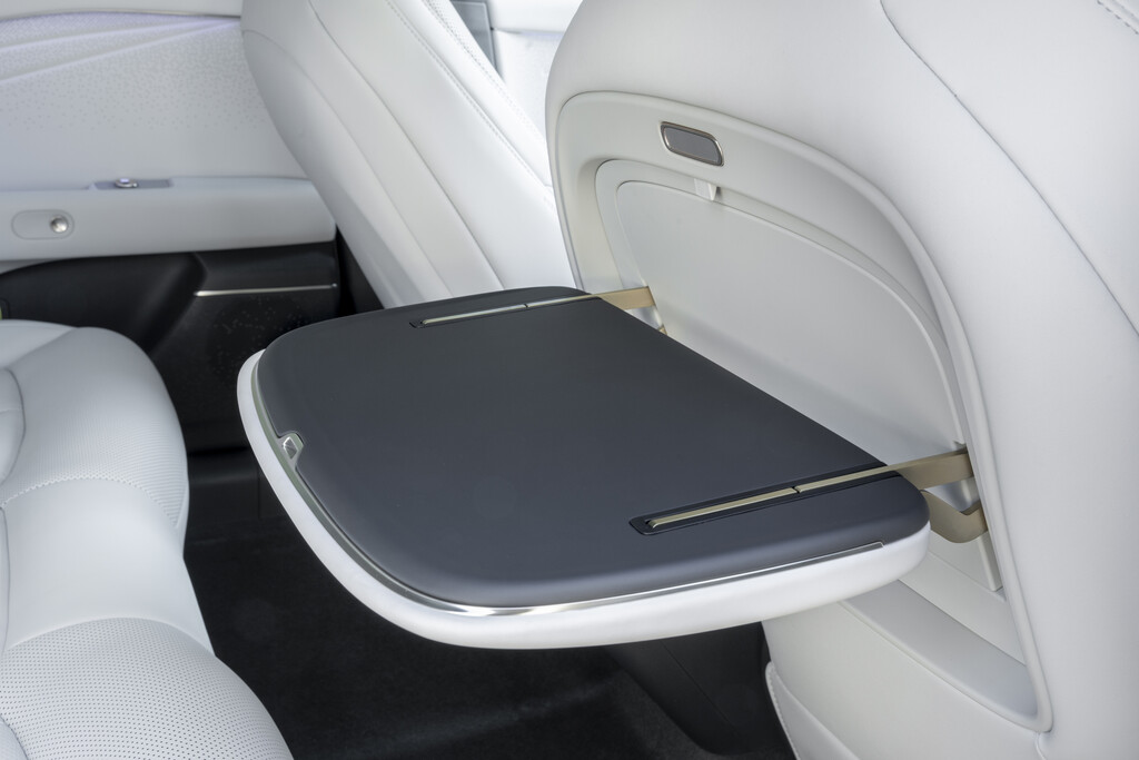 Dazu passt die Ausstattung. Schon die Basisversion fährt mit sehr kompletter Serienausstattung vor, darunter Sitzheizung, Sitzlüftung und Massage für Fahrer und Beifahrer, Panorama-Glasdach, umfangreiche Assistenzsysteme und ein Infotainmentsystem mit Sprachsteuerung. In den besser ausgestatteten Varianten dürfen sich sogar die Fondpassagiere über Sitzklimatisierung und Massage freuen, inklusive eines eigenen Displays zur Steuerung von Komfort- und Infotainmentfunktionen. Ein stabiler Klapptisch an der Rückseite des Beifahrersitzes unterstreicht, dass hier jemand sehr genau darüber nachgedacht hat, wie Menschen im Fond tatsächlich reisen.