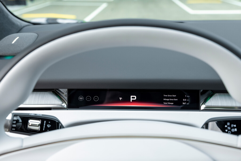 Das ist schade, weil der übrige Eindruck des Autos in Bewegung durchaus stimmig ausfällt. Für den ersten Fahreindruck stand die Long-Range-Version mit Heckantrieb bereit. Deren Elektromotor leistet 230 kW beziehungsweise 313 PS und bewegt die große Limousine mit erfreulicher Souveränität. Der Vortrieb setzt spontan ein, bleibt aber angenehm dosierbar. Das Auto wirkt nie hektisch, sondern eher gelassen kräftig. Diese Form der Leistungsentfaltung passt ausgezeichnet zum Format: schnell genug für müheloses Reisen, kräftig genug für zügige Zwischenspurts, ohne ständig sportliches Theater veranstalten zu wollen.