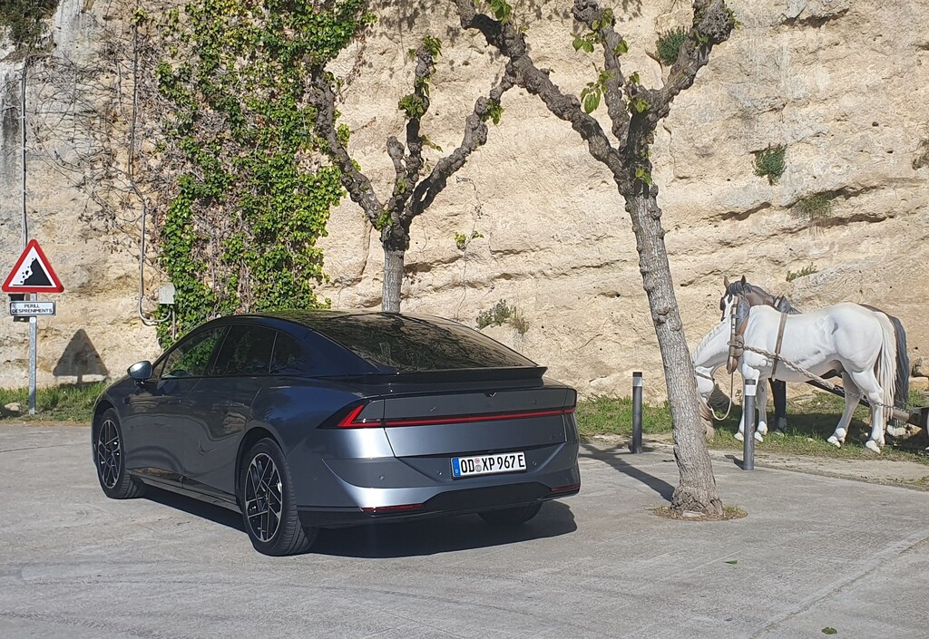Auch beim Verbrauch hinterlässt die Limousine den Eindruck, dass Aerodynamik, Antrieb und Fahrzeugabstimmung vernünftig zusammenspielen. Im gemischten Betrieb, darunter große Autobahnanteile mit gleichmäßigen Tempo um die 120 km/h, zeigte der Bordcomputer am Ende 19,7 kWh, gut drei kW/h mehr als angegeben (16,4 kW/h). Doch für Größe und Gewicht (2,7 Tonnen) des Wagens ist das ein durchaus stimmiges Ergebnis. Die WLTP-Reichweiten sollen je nach Version von 455 bis 530 Kilometern reichen. Das wirkt nicht spektakulär, aber angesichts der schnellen Ladetechnik völlig ausreichend.