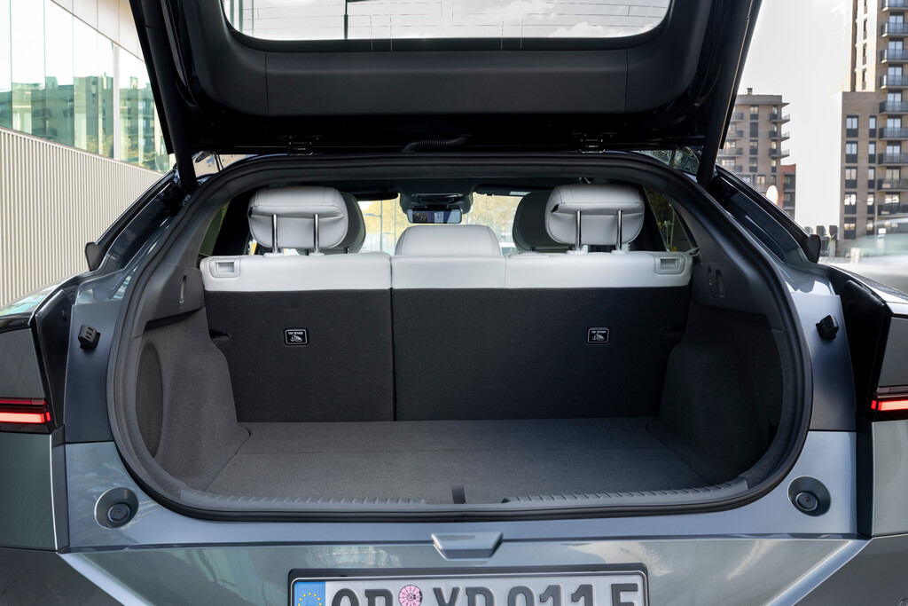 Auch beim Gepäck zeigt sich der P7+ alltagstauglich. Die Heckklappe öffnet weit und macht das Beladen deutlich einfacher, als es die flache Dachlinie zunächst vermuten lässt. Der Kofferraum schluckt 573 Liter. Wer die Rückbank umlegt, erhält einen großen, gut nutzbaren Laderaum, in den man sich zur Not sogar ausgestreckt reinlegen kann. Der Wagen wirkt damit nicht wie eine formverliebte Designübung, sondern wie eine Limousine, die Raum, Komfort und Reichweite zusammenbringen soll. Genau das dürfte in Europa erheblich besser funktionieren als die bisherige Interpretation.