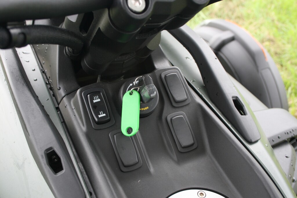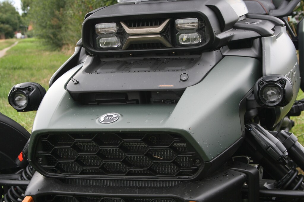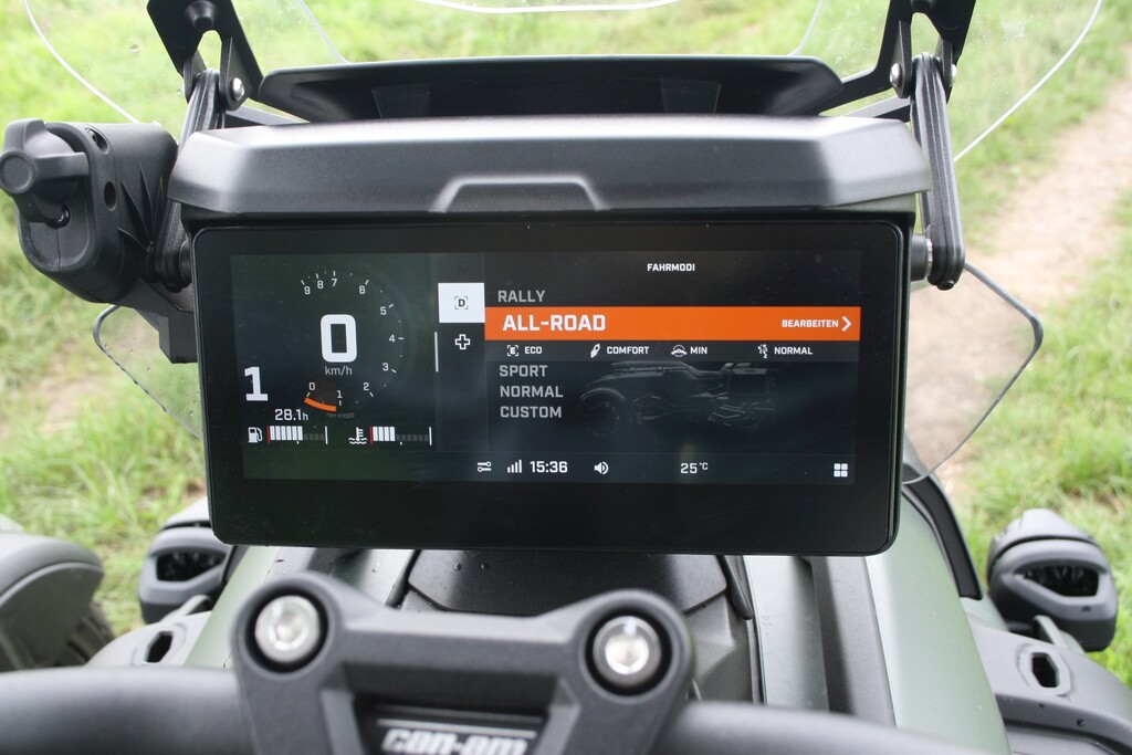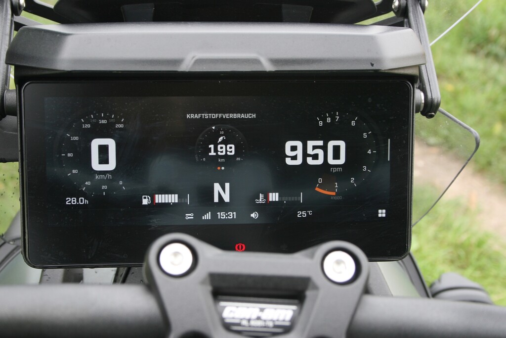 Mehr zu tun hat da schon die Traktionskontrolle, denn angesichts der Motorkraft und Fahrwerksgeometrie neigt das Hinterrad gerne zum Driften, wird aber von der Elektronik rasch wieder eingefangen. Gleiches gilt für den Fall, dass der Can-Am vorne einmal ein Beinchen heben will – sofort nimmt die Stabilitätskontrolle Leistung heraus und bringt das Rad wieder zurück an den Boden.