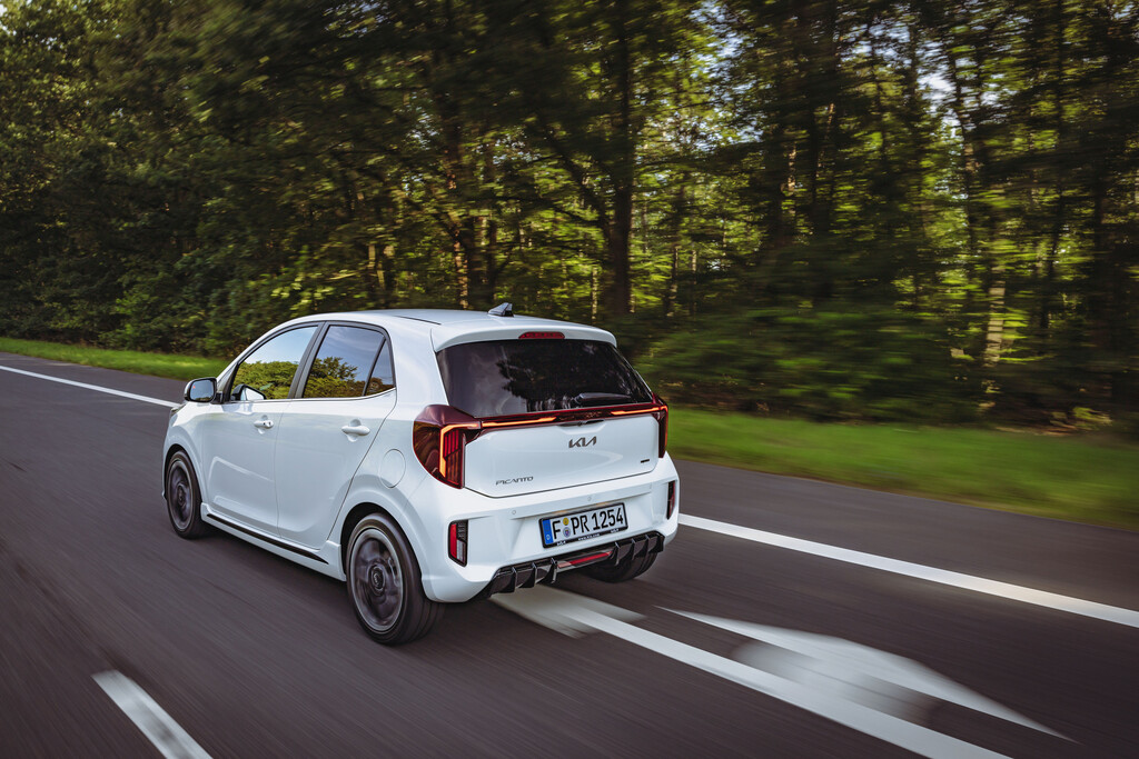 Startpunkt: Hamburg, kurz nach Sonnenaufgang. Der schneeweiße Picanto steht bereit in seiner sportlichen GT-line-Ausstattung, frisch modellgepflegt und kantiger als je zuvor. Der breite Grill mit scharf geschnittenen LED-Streifen, die durchgehende Lichtleiste am Heck mit Diffusor und die die breiteren Kotflügel mit 16-Zoll-Felgen: Der Kleine sieht ganz schön erwachsen aus.