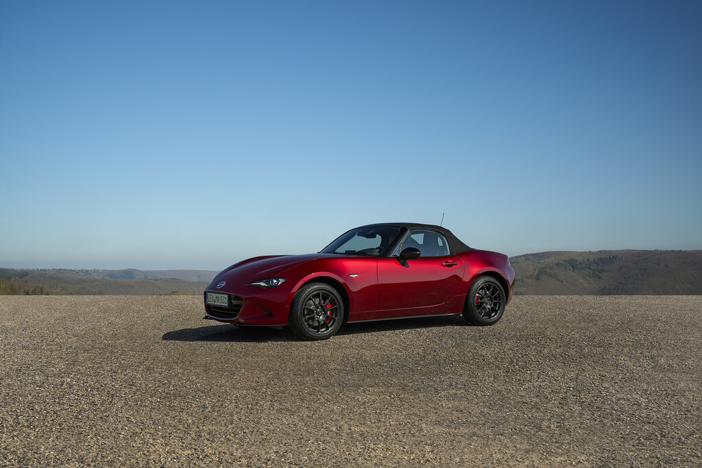 Nun, die britischen Roadster sind längst Geschichte, und der MX-5 rollt immer noch über die Straßen, und inzwischen haben die Kreativen der Marke in Hiroschima dem Zweisitzer eine eigenständige Form im hauseigenen Kodo-Design entwickelt. Das ständig weiterentwickelte Design verzichtet auf überflüssige Schmuckelemente, und so entsteht eine sportlich-markante Form, die sich auf knapp vier Metern auf das Wesentliche konzentriert. Und dann gibt es da noch eine japanische Definition. Der Mazda MX-5 soll, so die japanischen Marketing-Poeten „Jinba Ittai“, also die „Harmonie zwischen Fahrer und Fahrzeug“, verkörpern.