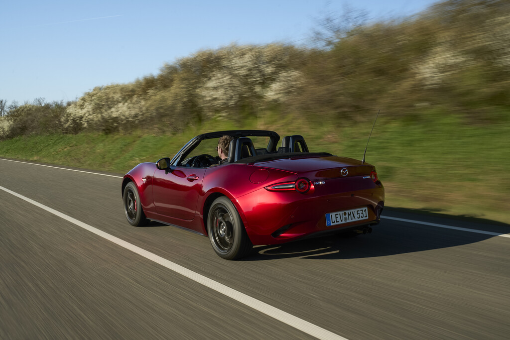 Aktuell wird der Roadster von einem 1,5-Liter-Vierzylinder mit 132 PS angetrieben. Die Zwei-Liter-Variante mit 184 PS ist inzwischen der europäischen Abgasreglementierung zum Opfer gefallen. Das Leichtgewicht (1078 Kilogramm) lässt sich durch den Verlust von 50 PS nicht weiter beeindrucken und erreicht noch immer Fahrleistungen, die von der sportlichen Silhouette versprochen werden. Nach 8,3 Sekunden ist Tempo 100 km/h erreicht und bei maximal 202 km/h endet der Vorwärtsdrang. Dass Mazda auf einen Turbo verzichtet, ist angesichts des drehfreudigen Antriebs kein Nachteil.
