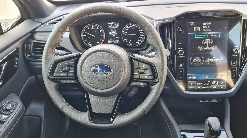 Die 4,67 Meter lange Karosserie ist um drei Zentimeter gewachsen, weitgehend schnörkellos und stellt im Vergleich zum Vorgänger keine Revolution des Designs dar. Der Wagen wirkt formal entspannt und wohl bemessen. Der Forester verkneift sich den Drang zu Höherem und bleibt in der dritten Dimension im Sinn des Wortes auf dem Teppich. Er pflegt die Tugenden eines großen Kombis und eifert den größeren (und höheren) SUV-Brüdern nicht nach. Deshalb fällt der Einstieg sowohl vorne als auch im Fond sehr leicht und die Rundumsicht ist dank der schlanken Dachsäulen ausgezeichnet.