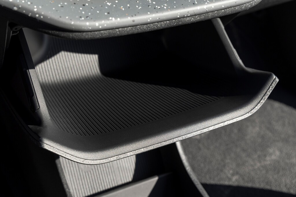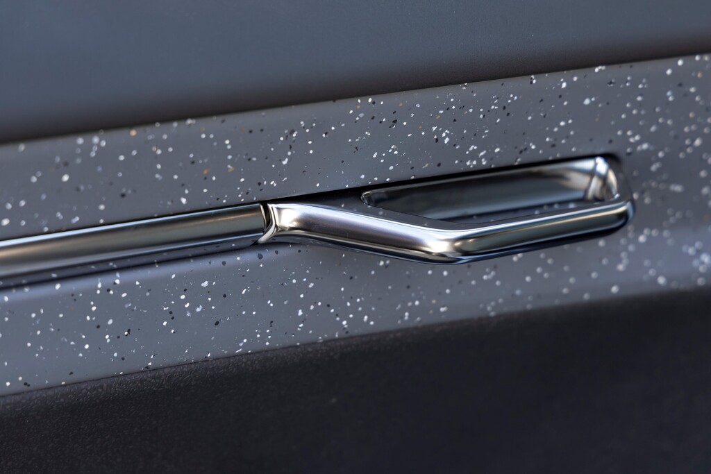 Dabei zeigt der EX30 durchaus Bestseller-Potenzial. Optisch wirkt das nur 4,23 Meter lange Crossover-SUV sehr gelungen: die geschlossene Front, die rahmenlosen Seitenscheiben, das schwarze Kontrastdach – alles stilsicher und markentypisch dezent, aber mit Charakter. Die unlackierten Stoßfänger unterstreichen den nachhaltigen Anspruch, der sich auch im Innenraum fortsetzt. Dort wurden Türgriffe aus recycelten Fensterrahmen verbaut, die Sitzbezüge bestehen aus einem Mix namens Nordico, gefertigt unter anderem aus alten PET-Flaschen. Leder sucht man vergeblich – und das ganz bewusst. Das alles ergibt eine cleane Atmosphäre, die sich anfühlt wie ein modernes, skandinavisches Wohnzimmer. Zumindest optisch. Haptisch wird das Bild allerdings etwas getrübt, denn einige der als Stoff getarnten Oberflächen entpuppen sich bei näherer Betrachtung und Klopfprobe als schnöder Kunststoff.