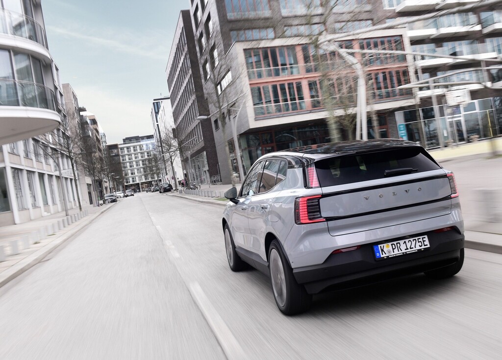 Auch beim Fahren macht der EX30 vieles richtig. Die 200 kW (272 PS) starke Basisversion liefert mit ihren 343 Newtonmetern Drehmoment einen beeindruckenden Vortrieb. Der Heckantrieb sorgt für gute Traktion und eine ausgewogene Balance, selbst wenn man es auf kurvigen Landstraßen sportlicher angehen lässt. Dank des tiefen Schwerpunkts durch die im Fahrzeugboden verbaute Batterie bleibt der kleine Schwede dabei stets kontrollierbar. Zwar fehlt eine Fahrmoduswahl, doch dank der dreistufig verstellbaren Lenkung lässt sich das Fahrverhalten auf den persönlichen Geschmack anpassen. In der Einstellung „Sport“ bietet die Lenkung die beste Rückmeldung, auch wenn sie insgesamt etwas synthetisch wirkt, weil es an echter Verbindung zur Straße fehlt.