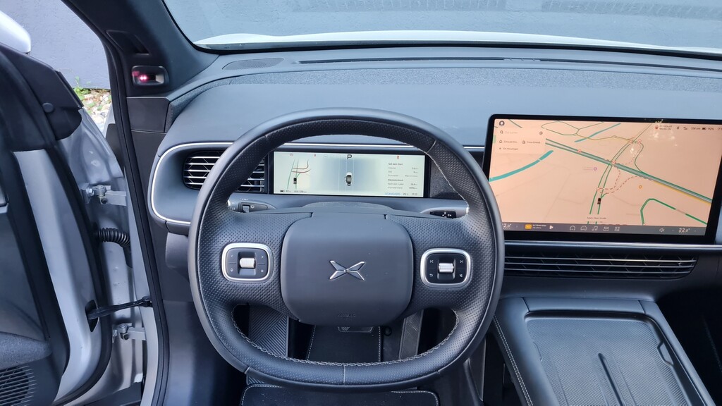 Und Xpeng hält noch andere Überraschungen bereit. Wer nach dem Fernentriegeln des G6 einen Startknopf sucht, der das System in Gang bringt, sucht vergebens. Der Wagen startet automatisch fernbedient, genauso selbstständig fährt das System herunter, wenn der Wagen nach dem Verlassen verriegelt wird. Vertrauen ist gut, Kontrolle ist besser: Wir haben danach immer mal wieder von außen auf den fast 20 Zoll großen Zentralmonitor geblickt, ob er sich wirklich verdunkelt hat. Ohnehin wird das Elektro-SUV nahezu knopflos bedient. Einzig am kleinen und handschmeichlerisch bezogenenen Lenkrad finden sich Fernbedienung für die Audioanlage und die Sprachsteuerung. Die funktioniert nicht immer fehlerfrei. Auf die Ansprache „Hey Xpeng“ erscheint eine Figur auf dem Mitteldisplay und fragt nach den Wünschen des Fahrers. Auf den Befehl „Ladeklappe öffnen“ schnurrt elektrisch betrieben der Kofferraumdeckel nach oben. Vielleicht haben wir genuschelt, aber auf das Kommando „Kofferraumklappe schließen“ wird uns mitgeteilt „Xpeng weiß nicht, wie das geht“. Also aussteigen und auf den Knopf im Rahmen der offenen Klappe drücken, den es immerhin noch gibt.