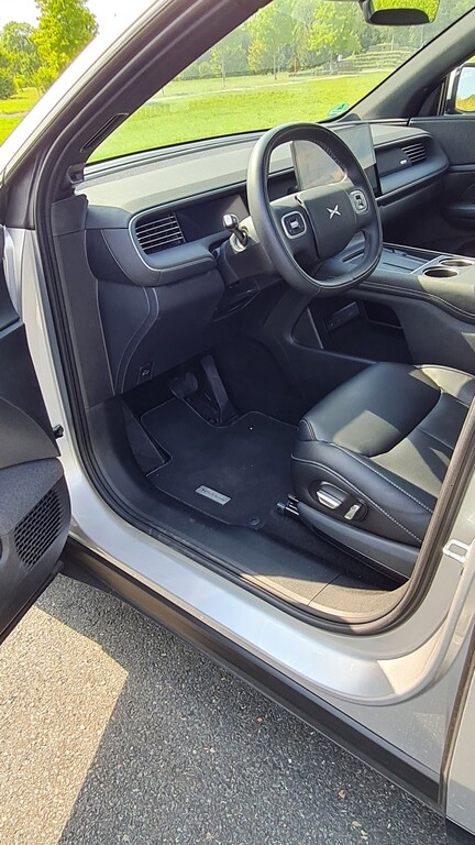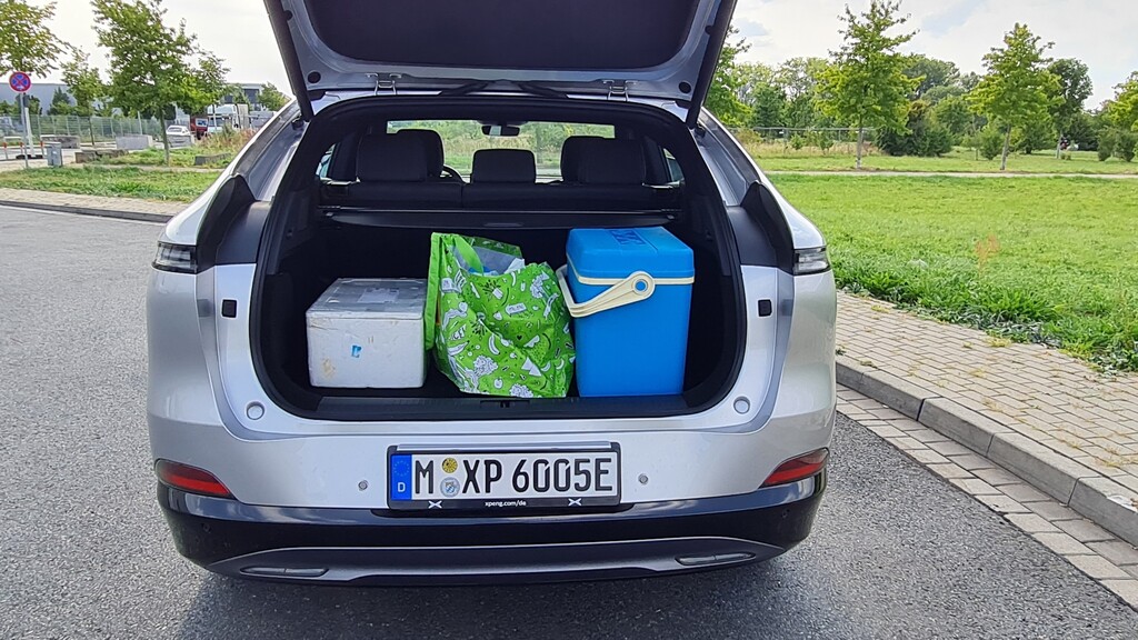Der Verzicht auf Armaturen, Schalter und Knöpfe bringt eine äußerst aufgeräumte Atmosphäre in den Innenraum. Die Armaturentafel ohne Armaturen ist mit angenehmen textilen Stoffen bezogen, glatte Flächen, sanfte Radien und eine rundum tadellose Verarbeitung überzeugen. Die Sitze lassen sich nicht nur beheizen, auch eine Belüftung ist dabei. Ohnehin glänzt der Xpeng mit einer Vollausstattung. Unter anderem gehören das schlüssellose Zugangssystem, das Panoramadach, die elektrische Sitzeinstellung, das beheizbare Lenkrad und die zahlreichen Assistenzsysteme wie der Kollisionswarner, der Brems- und der Spurhalteassistent, die Verkehrszeichenerkennung und der Türöffnungswarner. Auch die 20-Zoll-Leichtmetallräder, eine 3,3-kWh-Steckdose mit 230 Volt Wechselstrom, zwei belüftete Schalen auf dem Mitteltunnel, in denen Handys mit 50 Watt induktiv geladen werden können und kleine Tasten an den Türen, mit denen sie sich elektromechanisch öffnen lassen, gehören dazu. Als einziges Extra in der Ausstattungsliste wird die elektrisch schwenkbare Anhängekupplung geführt, die 1160 Euro kostet.